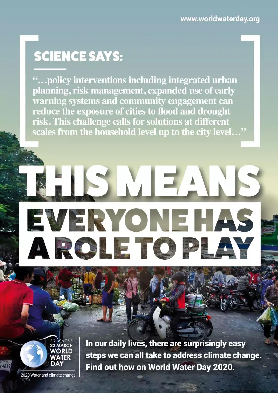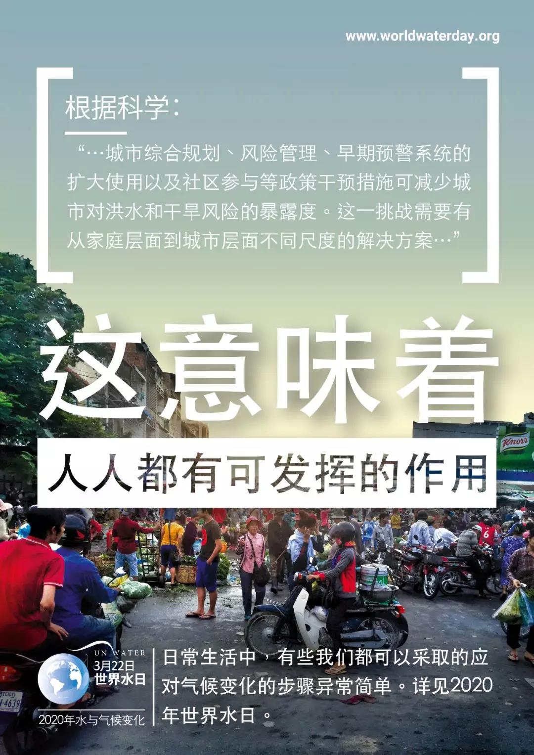 2020年世界水日的主題是水與氣候變化,以及兩者之間密不可分的聯(lián)系。該主題展示我們對水資源的利用將如何幫助我們減少洪水、干旱、資源短缺和污染,并將幫助應(yīng)對氣候變化本身。